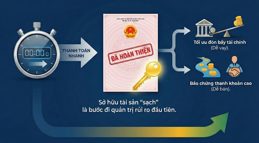 Tại Sài Gòn Land 2, chính sách thanh toán nhanh ngay từ giai đoạn đầu là một chỉ báo quan trọng cho thấy dự án đã hoàn thiện về mặt pháp lý và đủ điều kiện sang tên ngay lập tức. Dưới góc độ quản trị rủi ro, việc sở hữu một tài sản "sạch" về pháp lý không chỉ giúp nhà đầu tư dễ dàng tiếp cận nguồn vốn vay ngân hàng để tối ưu hóa đòn bẩy, mà còn là bảo chứng cho khả năng thanh khoản tốt trên thị trường thứ cấp khi cần chuyển đổi tài sản thành tiền mặt.