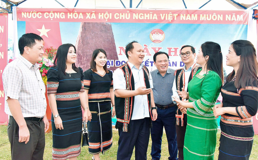 Phó Bí thư Tỉnh ủy, Chủ tịch UBND tỉnh Rah Lan Chung (thứ 4 từ trái sang) vui mừng cùng dự Ngày hội Đại đoàn kết toàn dân tộc huyện Đak Đoa.
